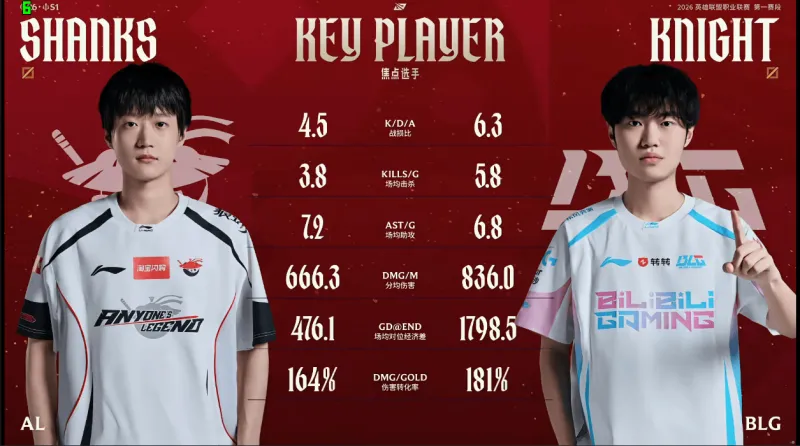虎扑02月06日讯 1.图一为双方关键中单选手数据对比
